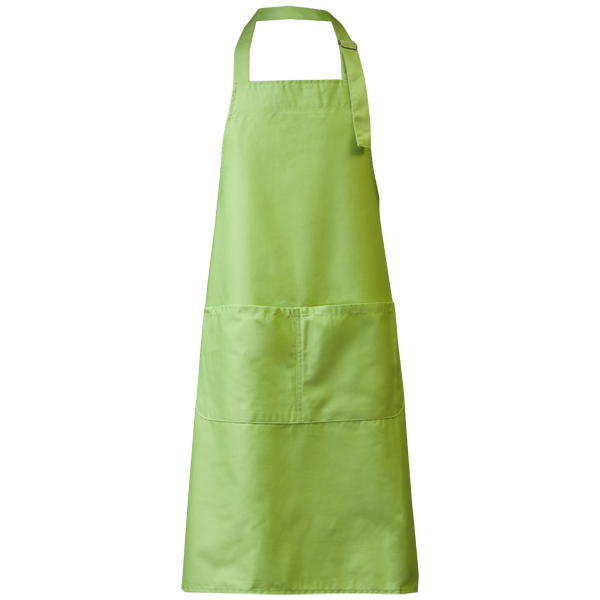 Dlouhá zástěra z kvalitního pevného materiálu. V přední části je velká dvoudílná kapsa na odložení nezbytností, která se určitě při vaření hodí. Za krkem je nastavitelný popruh se sponou a vzadu zavazování.